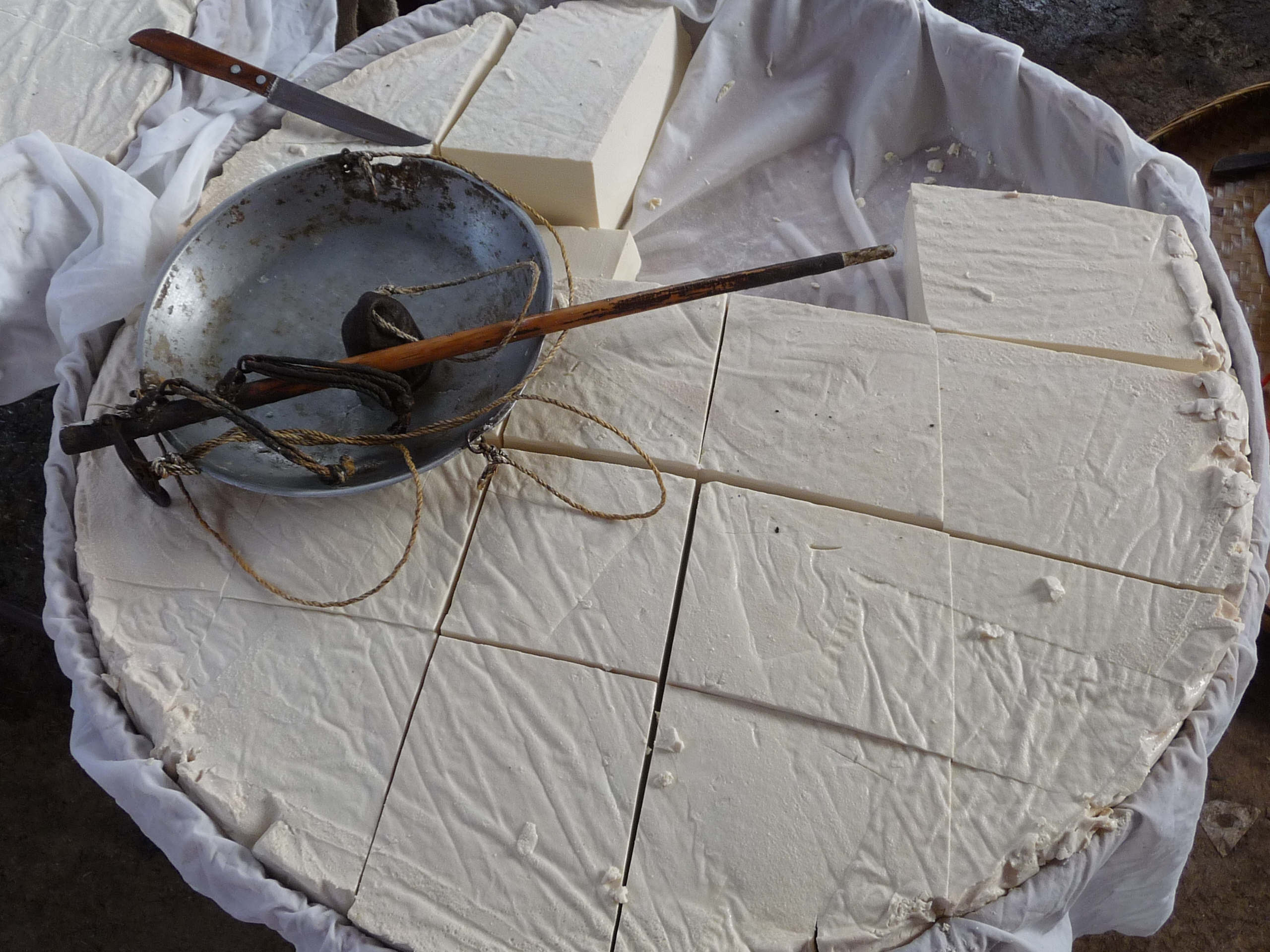 Fresh tofu, made from soybeans. Edamame, a Japanese appetizer made from soybeans in their pods.