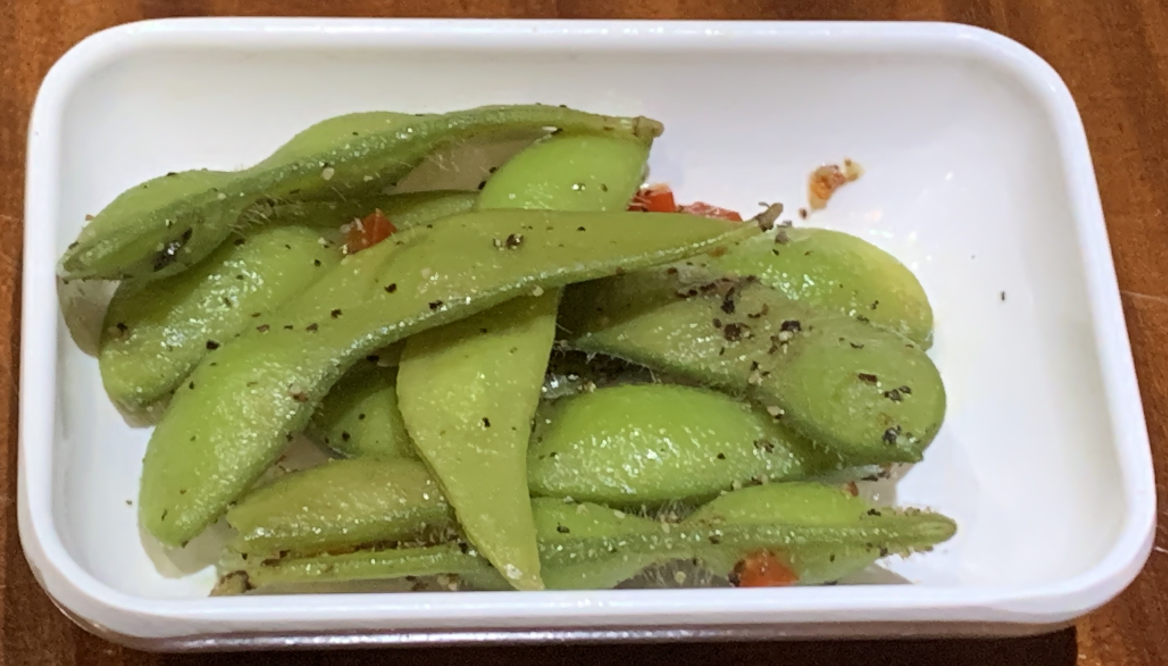 Fresh tofu, made from soybeans. Edamame, a Japanese appetizer made from soybeans in their pods.